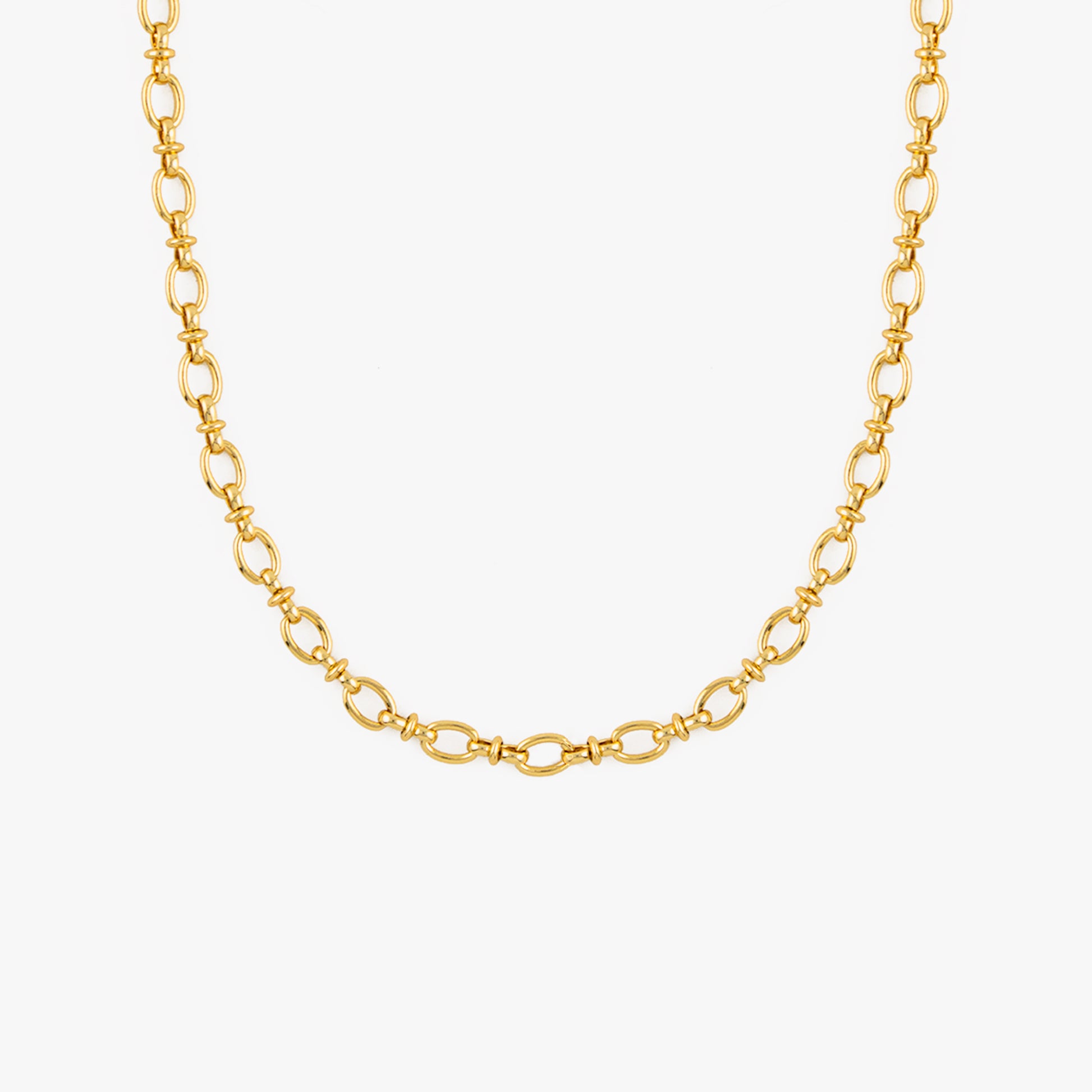 Chain: Made of oval links with a 4.5 cm extender, plated in 18k gold.